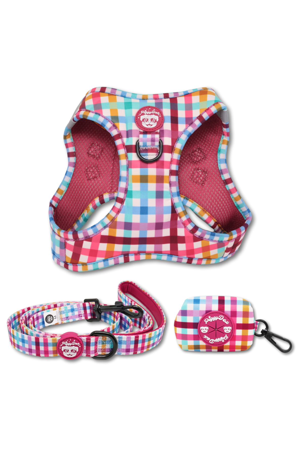 Pack arnés body + correa + portabolsas VICHY CONFETTI